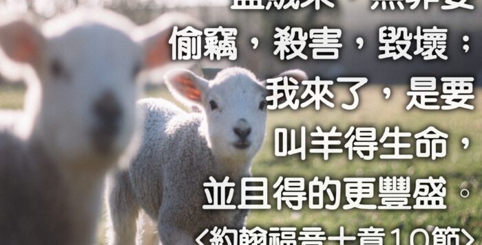 盜賊來,無非要偷竊,殺害,毀壞;我來了,是要叫羊得生命,並且得的更豐盛。 <約翰福音十章10節> 按此下載: 解析度 1920x1280