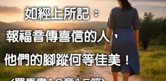 如經上所記:報福音傳喜信的人,他們的腳蹤何等佳美! <羅馬書10章15節> 按此下載: 解析度 1920x1280