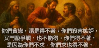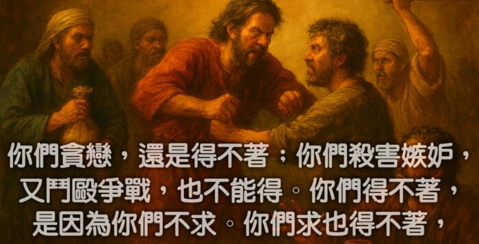 你們貪戀,還是得不著;你們殺害嫉妒,又鬥毆爭戰,也不能得。你們得不著,是因為你們不求。你們求也得不著,是因為你們妄求,要浪費在你們的宴樂中。 <雅各書四章2-3節> 按此下載: 解析度 1920x1280