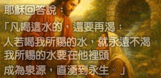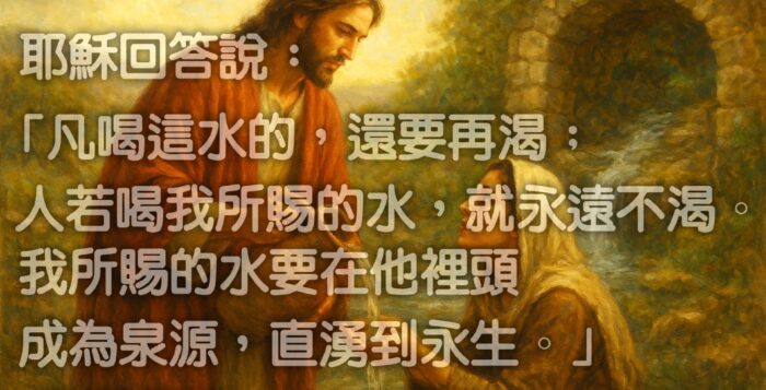 耶穌回答說:「凡喝這水的,還要再渴;人若喝我所賜的水,就永遠不渴。我所賜的水要在他裡頭成為泉源,直湧到永生。」 <約翰福音四章13-14節> 按此下載: 解析度 1920x1280