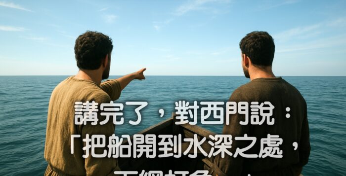 講完了,對西門說:「把船開到水深之處,下網打魚。」 <路加福音五章4節> 按此下載: 解析度 1920x1280