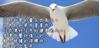 主耶和華的靈在我身上,因為耶和華用膏膏我,叫我傳好信息給謙卑的人,差遣我醫好傷心的人,報告被擄的得釋放,被囚的出監牢。 <-以賽亞書61章1節> 按此下載: 解析度 1920x1280